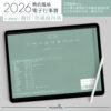 今年的電子行事曆內頁底仍為仿紙紋路、淺米色,整體色系走幽秘森綠色。